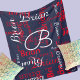 Rot-weiße Namen auf marineblau Hintergrund mit einem großen Anfangsbuchstaben