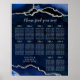 Navy Silver Agate Wedding Seating Chart 12 Table Poster
