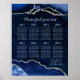 Navy Silver Agate Wedding Seating Chart 8 Table Poster