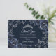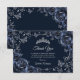 Navy silver Quinceanera celebration thank you card. Features, script font, butterflies, watercolor roses and tiara. Perfect for an elegant princess style glam celebration. Personalize with your own details.