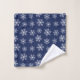 Ein Muster weißer Schneeflocken auf marineblau-blauem Hintergrund.