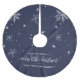 Dieser Marineschneflöckchen-Weihnachtsbaumrock ist die perfekte moderne Feriendekoration. Das Design zeichnet sich durch fallende Schneeflocken und den festlichen Satz "Haben Sie sich einen fröhlichen kleinen Weihnachten" aus. Personalisieren Sie den Baumrock mit Ihrem Familiennamen.