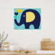 Navy und Aquamarin Elephant Kinderzimmer Poster