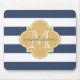 Navy und Gold Nautic Stripes Custom Monogram Mousepad