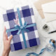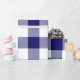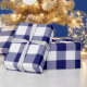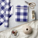 Dunkelblaue, weiße und hellblaue Quadrate bilden einen fett karierten Büffel. Die Marinemodelle und das weiße Gingham erinnern mich an die klassische Dekoration.