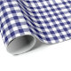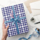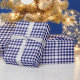 Dunkelblaue, weiße und hellblaue Quadrate bilden einen fett karierten Büffel. Die Marinemodelle und das weiße Gingham erinnern mich an die klassische Dekoration.