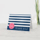 Navy und White Striping Muster Hot Pink Monogram Dankeskarte