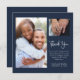Navy White Script Foto Hochzeit Danke Karte
