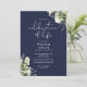 Eine elegante navyblaue, botanisch personalisierte Wasserfarbe Grünfloristik Gedenkfeier Foto Erinnerung Einladung. Entworfen von Thisisnotme©
