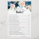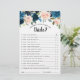Dunkelmarineblau-Blumenspielkarte "Wie gut kennst du die Braut?" mit elegantem Brautparty aus marineblau, königsblau , weiß , rot-grünen Eukalyptus-Blätter und blauer Rose. Bitte kontaktieren Sie mich für Hilfe bei der Anpassung oder wenn Sie ein anderes Produkt mit diesem Design benötigen.