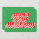 Ne cessez pas de croire - une carte de vacances amusante pour l'enfant en nous tous célébrant la saison de Noël. Conception de typographie avec un texte à ombre longue de bonbon rouge et blanc rayé sur un fond vert. Le verso de cette carte de Noël comprend un texte rouge et blanc coordonné pour que vous puissiez le personnaliser. "Joyeux Noël" votre nom de famille et vos noms individuels. N'oubliez pas de mettre à jour l'année.