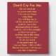 plaques avec stands avec le poème Don't Cry for Me