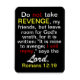 L'aimant flexi est du verset de la Bible Romains 12:19, comme il dit : "Ne prenez pas le REVENGE, mes amis, mais laissez place à la colère de Dieu, car il est écrit : "C'est à moi de venger; je vais récolter, dit le Seigneur." Parfait pour tout chrétien de montrer et de partager sa foi et sa confiance dans la parole de Dieu. Ferait un beau cadeau aussi pour n'importe quel croyant.