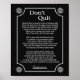 Ne quittez pas Poem - 8 x 10 imprimer ***Quand les choses vont mal, comme elles le feront parfois, Quand la route que vous êtes en train de truquer semble tout en haut, Quand les fonds sont faibles et les dettes sont élevées, Et vous voulez sourire, mais vous devez soupir, Quand les soins vous poussent un peu, Reposez, si vous le devez, mais ne quittez pas. La vie est bizarre avec sa torsion et ses tours, Comme chacun d'entre nous l'apprend parfois, Et beaucoup d'un échec se produit, Quand il aurait pu gagner s'il l'avait coincé dehors; N'abandonnez pas si le rythme semble lent, Vous pouvez réussir avec un autre coup. Le succès, c'est l'échec qui s'est révélé ; La teinte argentée des nuages de doute ; Et vous ne pouvez jamais dire à quel point vous êtes proche, Il peut être proche quand il semble loin ; Alors, restez au combat quand vous êtes le plus durement frappé - C'est quand les choses semblent pires que vous ne devez pas démissionner.