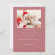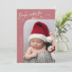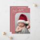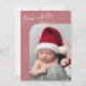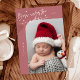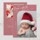 Elégante et moderne carte de thème de Noël avec un texte manuscrit qui dit "Né sous le faux-pied". C'est une carte faire-part de naissance pour les saisons de vacances ! Ajoutez vos photos, vos statistiques de naissance et un message ! L'arrière - plan est rose.
