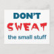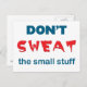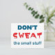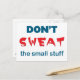 Carte postale avec une affirmation positive : "NE PAS SUEAT THE PEMALL STUFF" - un doux rappel pour garder tout en perspective. Si vous avez besoin de rester concentré sur votre objectif sans tomber dans la panique en travaillant sur des projets apparemment écrasants, alors épinglez cette carte postale là où vous pouvez le voir tous les jours - il vous aidera à rester calme et centré. Avez-vous des amis ou de la famille, ou peut-être des collègues au travail qui ont besoin d'encouragements ? Cette carte postale sera alors un cadeau parfait pour eux.