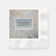 Ein weißer Rüffelhintergrund mit einem Rechteck aus silberfarbenen Imitaten mit Glitzer mit weißem Rand und Namen und Datum. Damit ist eine atemberaubende Serviette für Hochzeiten oder Veranstaltungen möglich. Bereit für Sie zu personalisieren.