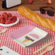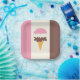 Neapolitane Eistüte in Erdbeere, Vanille und Schokoladengeschmack. Auf der Seite dieses Party mit quadratischem , mit rosa, creme und schokoladenbraunen, neapolitanischen Streifen. Es ist ein süßes Design für jeden, der Lieben, Eis zu essen! Passen Sie es an für einen Geburtstag, ein Eis-Party oder für jeden Anlass!