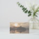 Die Morgensonne-Silhouettebäume und belichtet Flecken des Nebels. Der See reflektiert den Himmel.