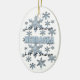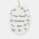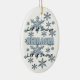 Un design graphique de flocons de neige de l'artiste-designer Charmaine Paulson sur un ornement de Noël. L'ornement a le texte "Let it Snow Nebraska", et modèles pour votre personnalisation.