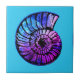 Keramik Kachel in einer Spirale, nautilus Meer Muschel gemustert mit einem blauen und violetten Nebel mit Sternen