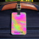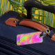 Ein abstraktes Neondesign. Personalisieren Sie das Programm mit einem Namen auf der Vorderseite und einem Namen und einer Adresse auf der Rückseite.