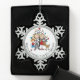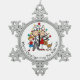 Le joli flocon de neige a formé des caractéristiques d'ornement un chiffre homme et dame de bâton avec un petit garçon et un chien brun devant l'arbre de vacances. Vous pouvez facilement changer la famille en photo de vos propres, et vous pouvez également la personnaliser avec vos noms ou tout autre message textuel.