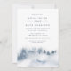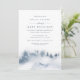 Élégante invitation à la douche nuptiale d'hiver avec un arrière - plan d'aquarelle représentant un paysage de montagne enneigé parsemé de silhouettes de pins dans les nuances brumeuses de bleu et gris. Personnalisez avec vos détails de douche nuptiale en lettrage bleu-gris chic. Un beau choix pour des douches nuptiales d'hiver élégantes en montagne, en forêt ou en neige.
