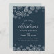 Un élégant dîner de Noël ou des invitations à des fêtes de fin d'année comportent une bordure supérieure et inférieure de flocons de neige tombés sur un riche arrière - plan bleu marine. Personnalisez avec vos détails de fête de Noël (avec "dîner de Noël et merveille") en lettres blanches.