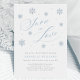 Découvrez la magie de l'hiver grâce à notre Invitation à la douche nuptiale Modern Snow in Love. Le design délicat présente des flocons de neige parsemés d'argent et de bleu clair, ornés de petites touches perles, créant un look chic et élégant. Cette invitation réunit la beauté de l'hiver de manière raffinée et sophistiquée, parfaite pour une célébration pleine d'élégance et de charme. Idéal pour une douche nuptiale hivernale, ce design reflète l'esprit serein et festif de la saison.