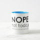 Eine schlichte weiße Tasse, innen schwarz, mit klassischer Typografie. Es hat einen schwarzen Text mit dem Titel "NOPE nicht heute und morgen sieht nicht gut aus".