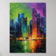 Neo Expressionist Singapore Skyline Vibrant Sunset Poster