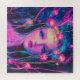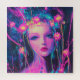 Treten Sie ein in eine glühende Traumwelt mit diesem surrealen Neonportrait einer Himmelsgöttin. In strahlend rosa, elektrisch blau und leuchtend gelb gebadet, verbindet dieses Kunstwerk ätherische Schönheit mit psychedelischer Fantasie.