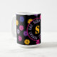 Neon pink, gelb und lila auf schwarz pickleball Muster, individueller Text Kaffee Tasse. Perfekt als Geschenk für Pickleball Spieler. Essen, schlafen. Pickleball. Wieder von vorne.