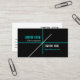 Schwarze Visitenkarte mit Neonblau Akzent Farbe für ein berufliches, praktisches und sauberes Aussehen, das immer noch auffällig ist. Schwarz und Neon blau Visitenkarte mit durchgestrichenen Linien und Retro-Schriftartes für jeden Beruf.