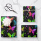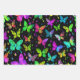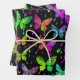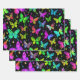 Neon Butterflies auf schwarzem Hintergrund Vibranl Geschenkpapier Set