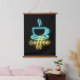 Neon Coffee Symbol & Text Wandteppich Mit Holzrahmen