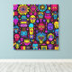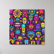 Neon Doodle Faces - Vibrant Street Art Pattern Leinwanddruck