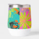 Ein lebhafter Bruch von Elektrofarben und Schablonenformen, die in reinem künstlerischen Chaos über die Leinwand tanzen. Frische Magentas, gelbe elektrische Blues, türkisfarbene und tiefe, harmonische Paare. Geschlossene Farbtexturen, Spiralmotive und fließende Formen schaffen ein energetisches Stück, das das Wesen der schöpferischen Freiheit und des künstlerischen Ausdrucks erfasst. Personalisieren mit einem Namen.