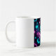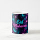 Eine lebendige Tasse im Neonstil "Eid Mubarak" mit leuchtenden Monden, Sternen und festlichen Elementen in Elektro-Rosa und Blau. Dieses moderne und stilvolle Kunstwerk eignet sich hervorragend, um Eid mit einem futuristischen und dynamischen Ambiente zu feiern. Ideal für Geschenke.