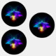 Antikes, mechanisches Feuerwerk mit Glühbirne und dünnen Flügeln glänzt orange, lila, türkis auf schwarzem Hintergrund. Steampunkstil.