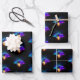 Antikes, mechanisches Feuerwerk mit Glühbirne und dünnen Flügeln glänzt orange, lila, türkis auf schwarzem Hintergrund. Steampunkstil.