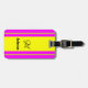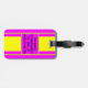 Gepäckanhänger mit einem fluoreszierenden Neongelb-gelb gestreiften Design auf Fuchsia. Die Rückseite zeigt eine zusätzliche benutzerdefinierte Form als Hintergrund für Ihre Adressinformationen. Dies kann nach Ihren Bedürfnissen skaliert oder gelöscht werden, wenn Sie es nicht benötigen. Ein echter auffälliger Gepäckanhänger, der es Ihnen ermöglicht, Ihre Tasche an einem stark befahrenen Flughafen zu finden.