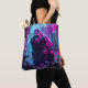 Digitale Darstellung eines großen männlichen Gorillas in einem Regenwald mit stilisierten Neonbeleuchtung.