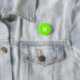 Button with a solid neon green circular base and crisp white lettering.