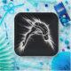 Ein Neonhochtaucher in der Luft zeigt eine dynamische und anmutige Bewegung, umgeben von strahlenden Lichtstürmen auf dunklem Hintergrund