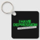 Neon Green Mental Health Advocate Schlüsselanhänger "I HVE DEPRESSION" auf der Vorderseite und QR CODE auf Freiwilligenarbeit Gelegenheiten auf der Rückseite - zu unterstützen, Fürsprecher und erreichen mehr Freiwillige zur Unterstützung der Veränderung der Angesicht der Depression.