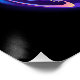 Glühendes, lila Unendlichkeitssymbol mit fliegendem, leuchtendem, blauen Kolibri auf schwarzem Hintergrund. Neon.