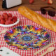 Ein blendendes Kaleidoskop-Design strahlt lebendige Farben und komplexe geometrische Muster aus und zeichne das Auge zu einem faszinierenden zentralen Punkt