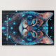 Dieses faszinierende Puzzle mit seinen majestätischen, schwarzen Katzen, beleuchtet mit leuchtenden Mandala-Neonmustern. Die komplexen, symmetrischen Designs fließen durch sein Fell in lebhaften Farbtönen von elektrischem Blau, feurigen Orange und Magenta. Die türkisblauen Augen der Katze scheinen mit mystischer Energie zu leuchten und zeichne einen in ihren rätselhaften Blick. Set auf schwarzem Hintergrund, lebendige Linien und strahlende Details schaffen einen blendenden Kontrast und machen jedes Puzzleteil zu einem Kunstwerk. Eine atemberaubende Mischung aus Fantasie und Eleganz, perfekt für diejenigen, die Katzen, Farbe und kosmisches Rätsel Liebe.